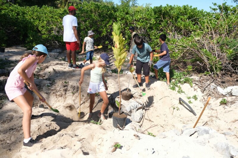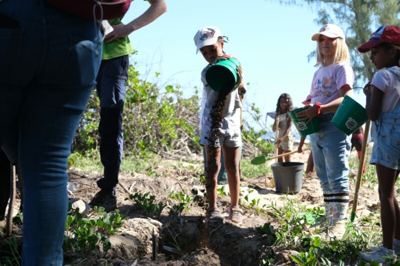 Dans le cadre du projet de végétalisation de la plage des Brisants, 3 classes des écoles du littoral ont été conviées ce vendredi 5 mai pour participer aux opérations de sensibilisation et de plantation : l’école de la Saline-les-Bains (Classe de CM2 de M. Delorme – 28 enfants), l’école élémentaire Carrosse (Classe de CE1/CE2 de Mme Boyer – 21 enfants) et l’école de l’Hermitage-les-Bains (Classe de CE1 de Mme Deschemaeker – 24 enfants). L’encadrement de cette opération a été réalisée par les équipes de la Direction Biodiversité et Ressources Naturelles, le Centre d’Étude et de Découverte des Tortues Marines (CEDTM) et les 20 étudiants du BTS GPN du Lycée Emile Boyer de la GIRODAY. Les objectifs de cette animation sont multiples : planter pour créer des habitats favorables pour accueillir les tortues marines et autres espèces faunistiques dans les années à venir, lutter contre les espèces exotiques envahissantes (prosopis, choca bleu etc.) et créer des îlots de fraîcheur dans le contexte de réchauffement climatique et des corridors écologiques. Ce vendredi 5 mai, ce sont 85 arbustes endémiques qui ont été plantés : Takamaka, Raisin Bord de Mer, Mahot Tantan, Latanier rouge.