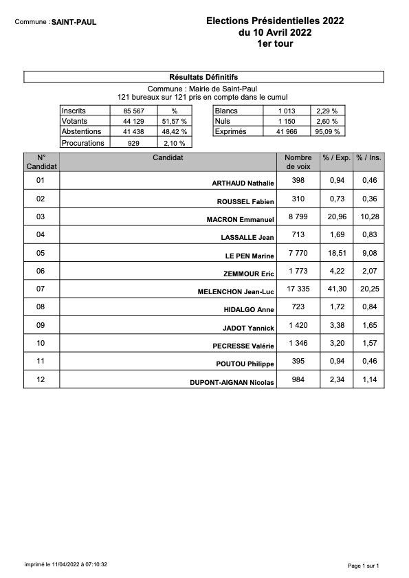 Les résultats définitifs à Saint-Paul :