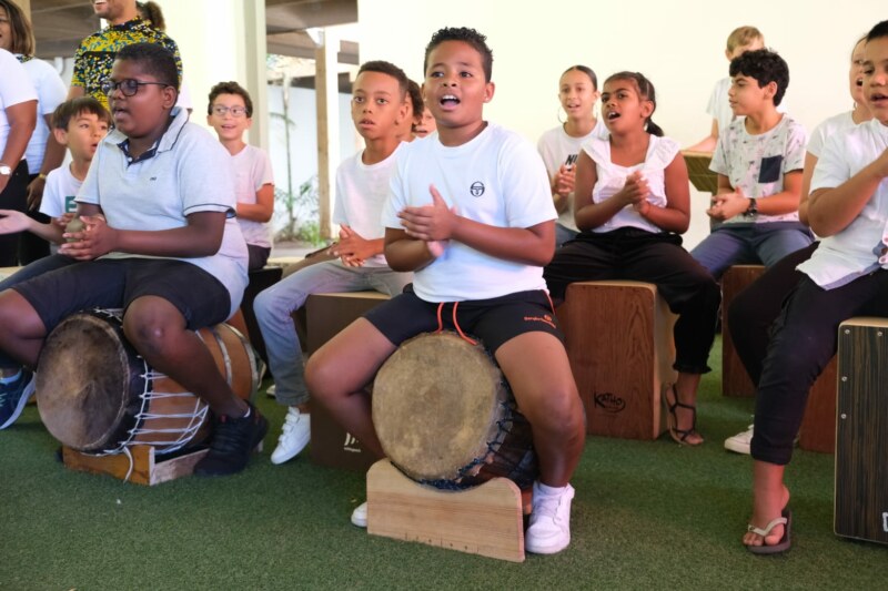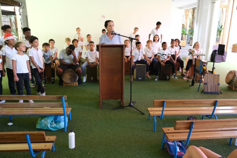 Bientôt la Fèt Kaf, pour célébrer la date anniversaire de l’abolition de l’esclavage, les élèves de l’école municipale de musique se sont produits en concert ce samedi 17 décembre à l’école maternelle centre à 10h30. Les élèves percussionnistes ont eu le plaisir de partager la scène avec la chorale Kouler Gospèl Réunion. Ils ont interprété devant le public conquis et la 1ère adjointe de la Ville de Saint-Paul, Suzelle BOUCHER, plusieurs morceaux du répertoire réunionnais. Parmi eux : “Valé Valé” de Firmin Viry, “Banm Kalou Banm” de Daniel Waro, “La Montagne” de Baster et “Marmay lontan” de Baster.