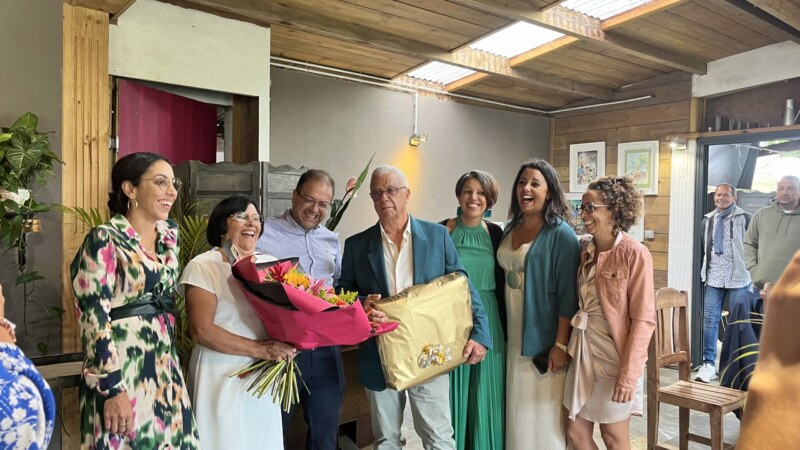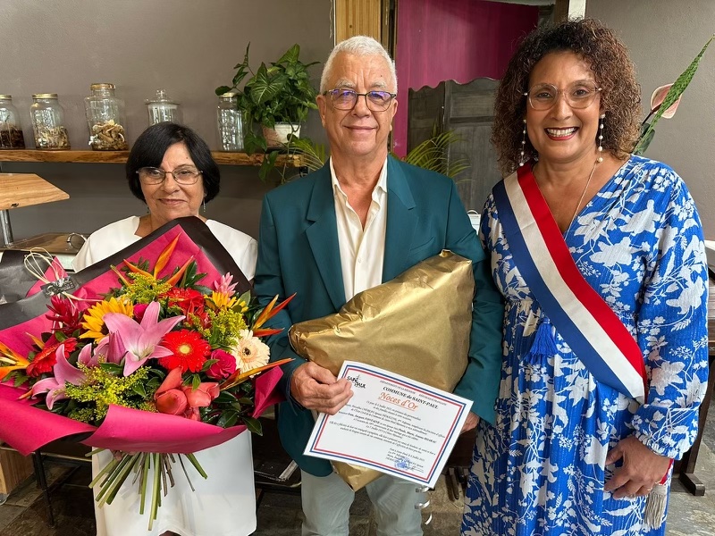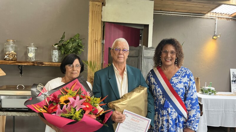 Ce samedi 8 juillet, Paule MARIE-JEANNE et Jean-Jacques FONTAINE ont célébré en présence de leur famille et de leurs proches leurs noces d’or. Ils se sont rendus à la Table du Maïdo pour marquer ce moment symbolique pour le couple ainsi que pour leurs 5 enfants et leurs 8 petits-enfants. La troisième adjointe Pascaline CHEREAU-NÉMAZINE, déléguée à la gestion et à l’aménagement des voiries communales et à la petite enfance, était présente pour célébrer ce demi-siècle d’amour.