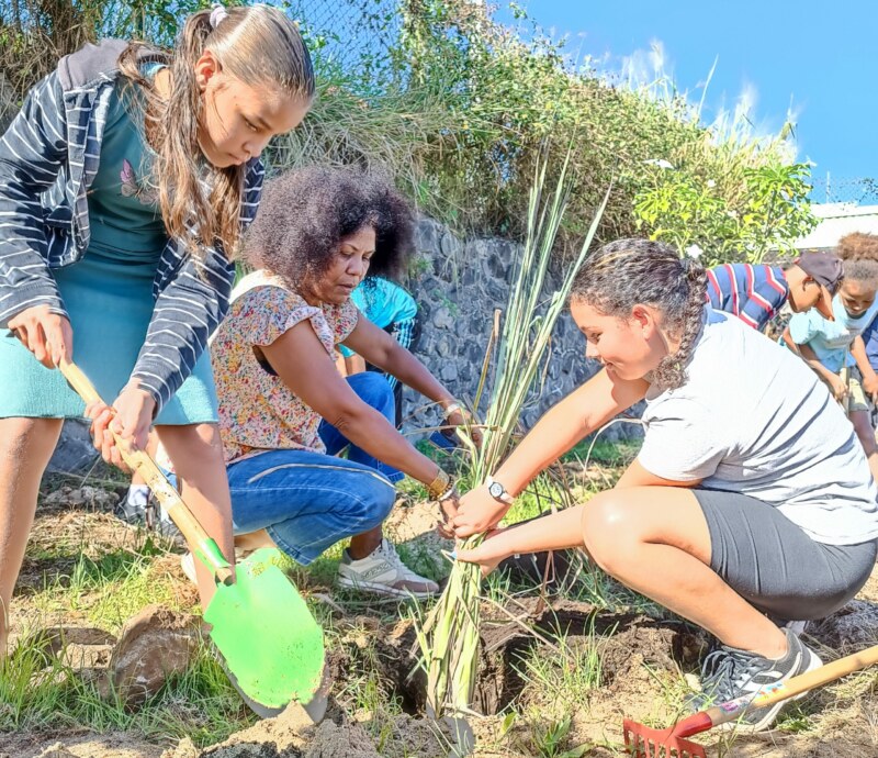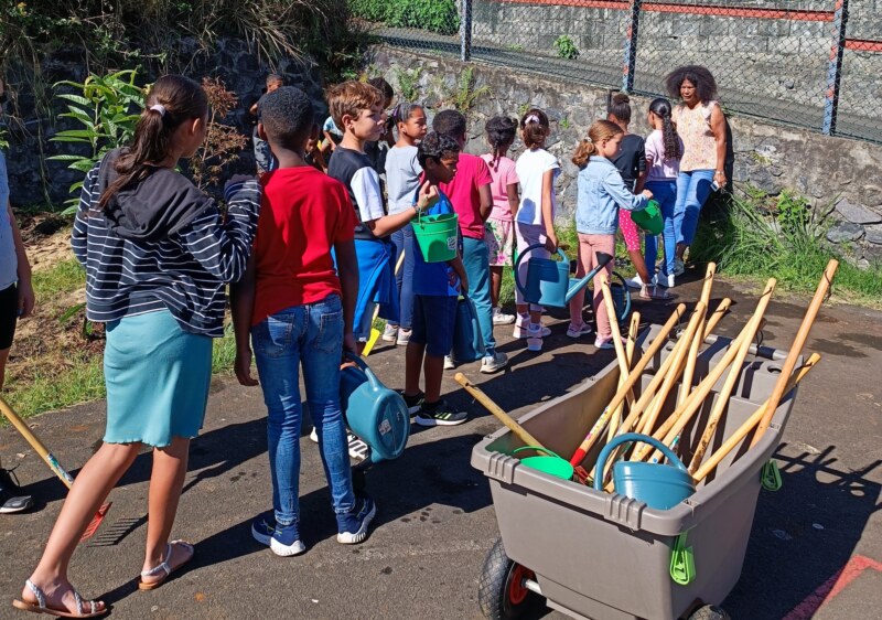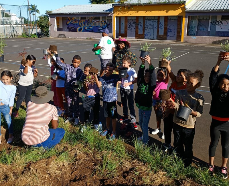 Engagée pour le préservation de la biodiversité, La ville de Saint-Paul lutte activement contre les espèces exotiques envahissantes sur son territoire et en particulier contre le Tulipier du Gabon. Deux tulipiers étaient présents dans la cour de l’école Elémentaire du Guillaume et ils ont été coupés durant les vacances de mai. Dans le cadre du plan 100 000 arbres, un chantier éco-citoyen de plantation a été mené au sein de l’école. Ainsi, c’est au cours d’une belle matinée ensoleillée, ce mardi 13 juin, que 10 classes de l’école Elémentaire du Guillaume se sont relayées pour planter arbres et d’arbustes endémiques et indigènes au niveau des parterres situés au sein de l’école et aux abords du plateau noir. Près de 500 végétaux ont pris racine dans ces nouveaux aménagements et d’ici quelques années apporteront de l’ombre dans le quartier.