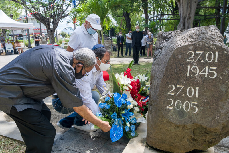 C’est lors de la commémoration de la libération du camp d’Auschwitz qu’une soixante de personnes s’est réunie au Square de l’Appel du 18 juin 1940 ce mercredi 27 janvier 2021, pour un moment de partage, de recueillement. En présence de La Maire Huguette BELLO, du président du TCO, Emmanuel SÉRAPHIN, du président de l’association juive de La Réunion, Jacques HAZAN, du président du groupe de dialogue inter-religieux Idriss ISSOP BANIAN, du rabbin Mendel SIBONY, des anciens combattants, des élus et jeunes élus du conseil communal des enfants et des jeunes, des citoyens… tous présents pour perpétuer ce devoir de mémoire.