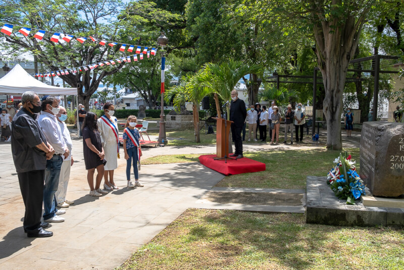 Ce moment d’émotion nous rappelle également que ces 12 années de l’horreur ont également vu le combat et la résistance de Réunionnais qui ont lutté pour que demain soit un meilleur jour. C’est avec ferveur que la Maire, Huguette BELLO, ne cessera de mettre en lumière ces femmes et ces hommes qui ont, sans relâche, « permis la libération de ces camps de l’horreur. À l’image du Saint-Paulois, Wilfrid HÉNOD, né le 29 juin 1898, mobilisé dans les forces de l’armée en 1917. Resté dans l’armée, puis nommé adjudant chef en 1932. Il part au combat en 1940, interné au stalag prés de Rennes en 1942. Libéré en 1941, il rejoint la résistance pour la libération de tout un peuple ». Une démonstration de force et de bravoure, de résistance dont à fait preuve le peuple réunionnais. C’est en cela que la fierté est plus grande lorsque dans cette page de l’histoire, ces Hommes nous rappelle « qu’il nous faut lutter avec détermination contre toutes les manifestations de l’oppression humaines. »