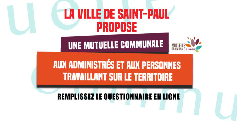 La Mutuelle Communale Solidaire s’adresse à tous les Saint-Paulois et Saint-Pauloises et pour toutes les personnes qui travaillent à Saint-Paul. Afin de cerner au mieux vos attentes, nous vous invitons à remplir le questionnaire. Parfaitement anonyme, cette consultation va servir à identifier précisément vos besoins en matière de Santé.