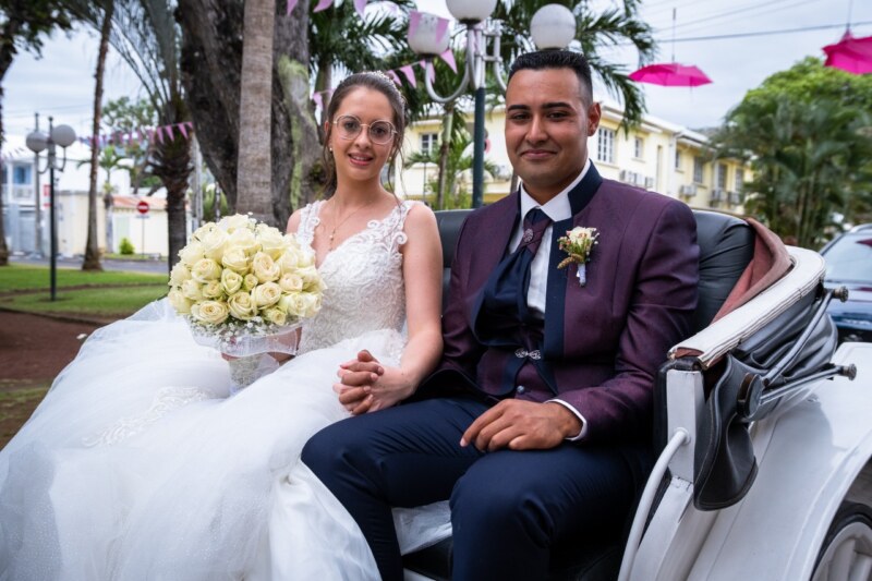Ce vendredi 7 octobre, leur union a été scellée. Pour l’occasion, tout le village de Salazie est présent à Saint-Paul. Comble du romantisme, les amoureux qui sont ensemble depuis qu’ils ont respectivement 17 et 19 ans sont arrivés et repartis en calèche avec un bouquet bien insolite. Insolite, car composé de fleurs… de fruits et de légumes. On ne pouvait pas trouver mieux pour ce couple d’agriculteurs !