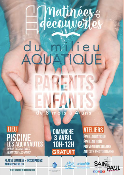 Au vu des conditions climatiques, la Ville de Saint-Paul informe aux parents déjà inscrits à nos “matinées découvertes du milieu aquatique parents/enfants” à la piscine des …