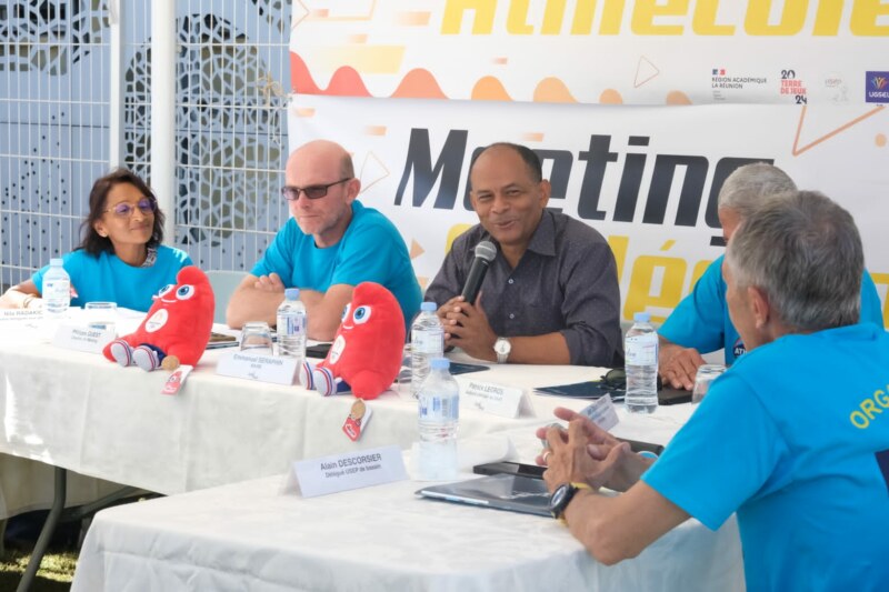 Ce mardi 20 juin s’est déroulée la conférence de presse du premier meeting Athlécoles qui se déroulera le samedi 1er juillet au stade régional Paul-Julius-BÉNARD. En présence du Maire de Saint-Paul, Emmanuel SÉRAPHIN, des élus Nila RADAKICHENIN (Adjointe déléguée aux affaires scolaires) et Patrick LEGROS, (Adjoint délégué au sport), d’Alain DESCORSIER, Délégué USEP, de Philippe QUEST, Directeur du Meeting, de Catherine PAOLI, Présidente de l’OMSEP, de Philippe BRAULT, Directeur diocésain enseignement catholique et de Jean Claude PRIANON, Président de la Ligue Réunionnaise d’Athlétisme, cette rencontre a marqué le déroulement du meeting, qui est le point d’orgue du dispositif lancé en septembre 2022 sur notre territoire.