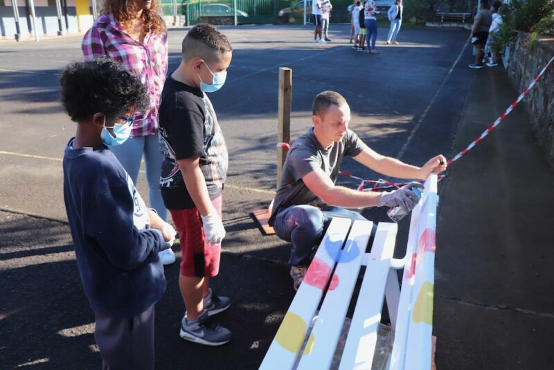 Banc de l’amitié : les élèves de l’école Paul-Julius-BÉNARD à l’oeuvre