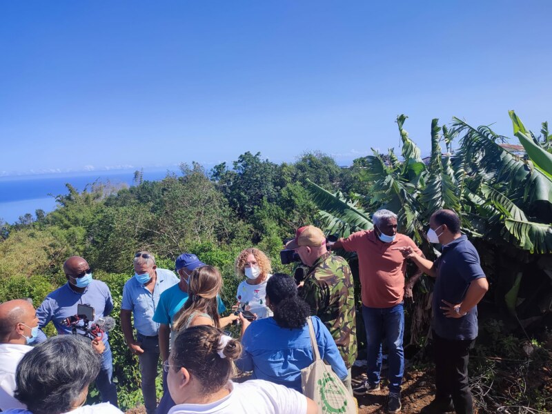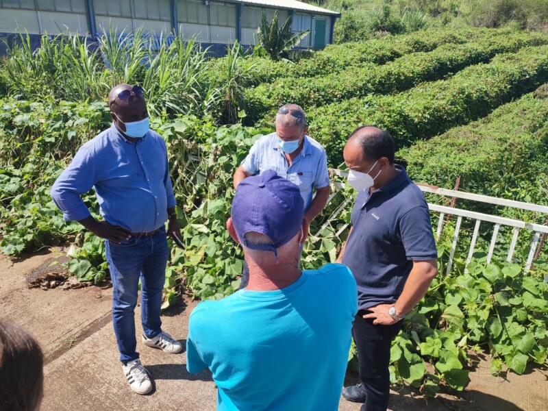 Accompagné des présidents de la Fédération départementale des Syndicats d’Exploitation Agricole (FDSEA), Dominique GIGAN et de la Confédération Générale des Planteurs d’Éleveurs de la Réunion (CGPER), Jean Michel MOUTAMA, le maire, Emmanuel SÉRAPHIN, les élus, Carole LEVENEUR et Julius METANIRE, et les membres des deux chambres sont allés à la rencontre des agriculteurs situés dans les hauts de Saint-Paul et dont les récoltes ont été mises à mal après le passage du cyclone.