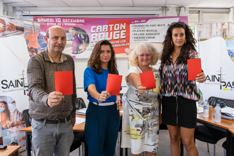 Une conférence de presse s’est déroulée ce jeudi 8 décembre à la Mairie de Saint-Paul où le CEVIF (Collectif pour l’élimination des Violences familiales) et la Commune présentaient l’événement “Carton Rouge aux violences Intra Familiales”. Elle s’est tenue en présence de Frédéric ROUSSET, président du CEVIF, Chloë BROCHETON d’Ekopratik, des élu(e)s de la Ville Roxanne PAUSÉ-DAMOUR, déléguée à la politique Sénior et au développement des actions intergénérationnelles et aux affaires sociales et de Patricia VALLON-HOARAU CROSSON, déléguée à l’insertion sociale et à l’égalité des droits et à la lutte contre l’illettrisme. “La thématique des Violences Intra familiales est très importante pour nous. C’est pour cela que nous avons mis en place le premier colloque professionnel sur la lutte contre les violences intra familiales à Saint-Paul. Un colloque qui s’est tenu le 23 novembre dernier avec les professionnels qui oeuvrent dans le domaine de l’accompagnement des victimes de violences intrafamiliales (VIF) à Saint-Paul. Nous souhaitons mettre du sens dans le parcours des victimes, y mettre du process afin de le rendre plus fluide”, commence Roxanne PAUSÉ-DAMOUR, déléguée à la politique Sénior et au développement des actions intergénérationnelles et aux affaires sociales.