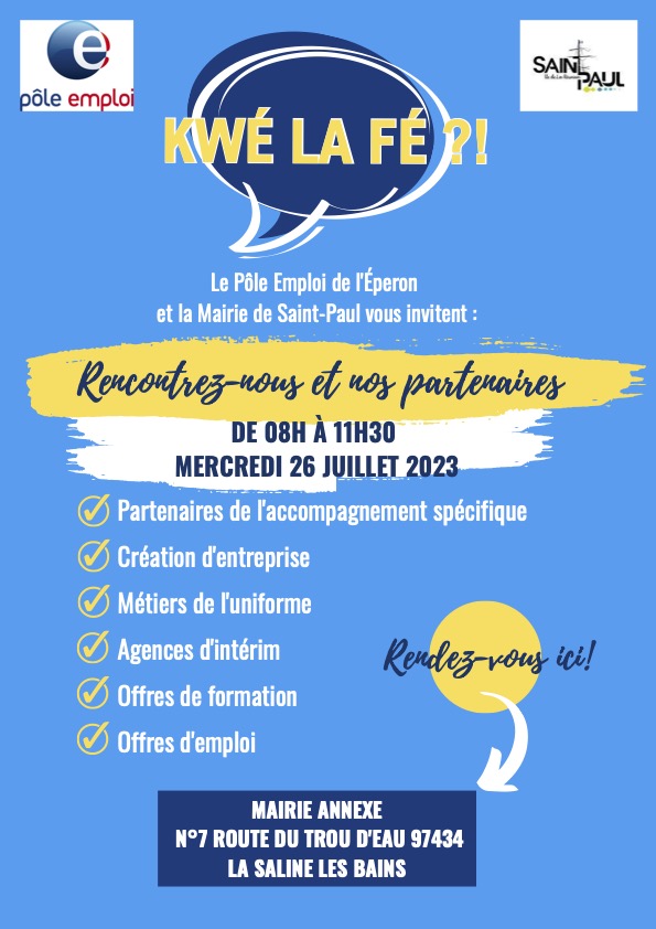 La Ville de Saint-Paul met en place sur son territoire en partenariat avec le Pole Emploi, une permanence pour l’insertion professionnelle le 11 octobre à l’Espace …