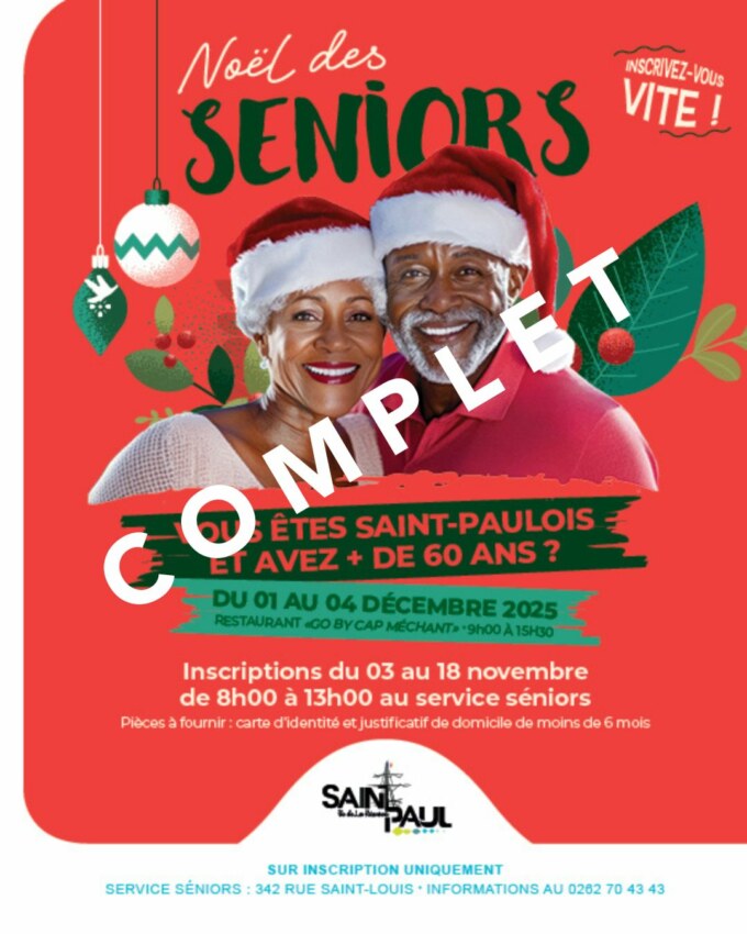 La Ville de Saint-Paul organise son traditionnel Noël des Séniors du 1er au 4 décembre 2025, au restaurant “GO by Cap Méchant”.Cet événement festif, très attendu …