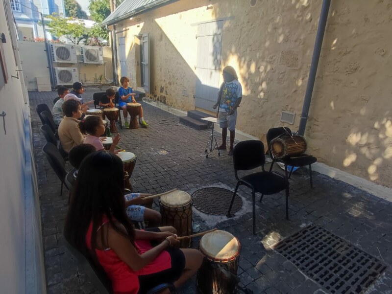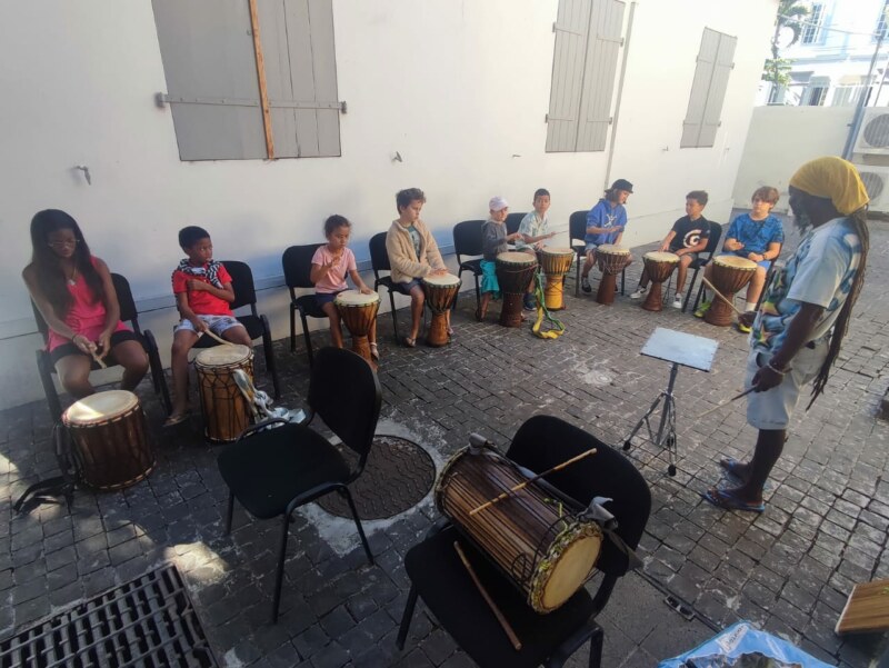 Le premier jour des Vacances Culturelles ont débuté à Saint-Paul ! Place à l’atelier percussions ce matin avec Erno à l’espace culturel Sudel Fuma en présence de Suzelle Boucher, deuxième adjointe et élue déléguée aux affaires culturelles. Les marmailles présents ont pris plaisir à découvrir l’histoire de cet instrument de musique typique de La Réunion. Au cours des prochains jours, d’autres ateliers seront prévus comme le tressage de feuilles coco, la gravure sur calebasse, le moringue mais également la fabrication de cerf-volant et l’éveil musical. Et pour satisfaire petits et grands, certains ateliers sont accessibles dès 6 ans.