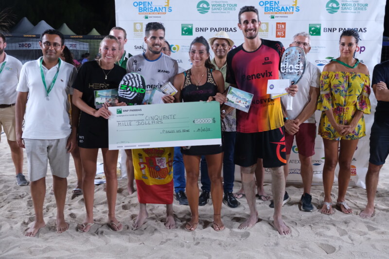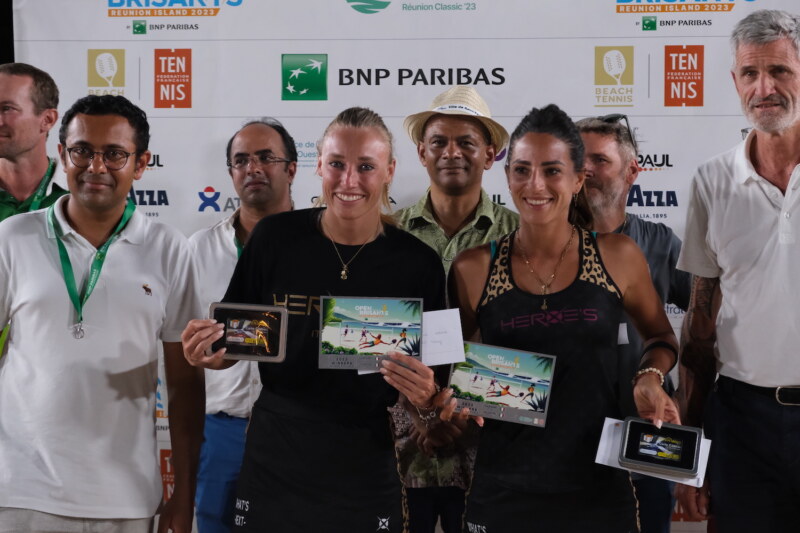 L’Open des Brisants a accueilli du 15 au 19 mars près de 600 joueurs, plus de 80 joueurs étrangers de 21 nationalités différentes. La dernière journée de cette douzième édition a tenu toutes ses promesses. La plage des Brisants de Saint-Gilles-les-Bains a vibré sur les applaudissement des spectateurs. Plusieurs milliers de personnes ont pu assister aux finales doubles, dans une ambiance de folie autour du Central sur les encouragements du Maire de Saint-Paul ; Emmanuel SÉRAPHIN, et des élus de la ville, Suzelle BOUCHER, Hélène ROUGEAU, Patrick LEGROS, Roxanne PAUSÉ-DAMOUR, Virginie SALLÉ , Sebastien GUYON, Michel CLEMENTE. Chez les femmes dans un duel 100% transalpin, le duo Giulia GASPARRI et Ninny VALENTINI décrochent le titre, elles ont battu Nicole NOBILE et Sofia CIMATTI 6 – 0, 3 – 6, 10 – 6. Le tournoi principal, avec à la clé pour les vainqueurs 50 000 $, compte parmi les 4 tournois du grand chelem mondial. Il s’est conclu avec la victoire chez les hommes de Michele CAPPELLITTI et Antomi RAMOS. Ils ont dominé le français chouchou du public Nicolas GIANOTTI et l’italien MATTIA SPOTO 6 – 2, 6 – 3. La Ville de Saint-Paul félicite les championnes et les champions qui se sont affronté(e)s sur le sable, les joueurs ainsi que les bénévoles pour cette belle organisation. Rendez-vous en mars 2024 pour la 13ème édition de cet Open sur le territoire de Saint-Paul, terre de champions.
