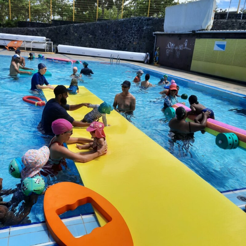 Mis en place afin de développer des actions autour de l’accompagnement à la parentalité chez les jeunes parents le Service Petite Enfance et Parentalité de la Ville de Saint-Paul met en place plusieurs ateliers aquatiques dans les piscines du territoire.