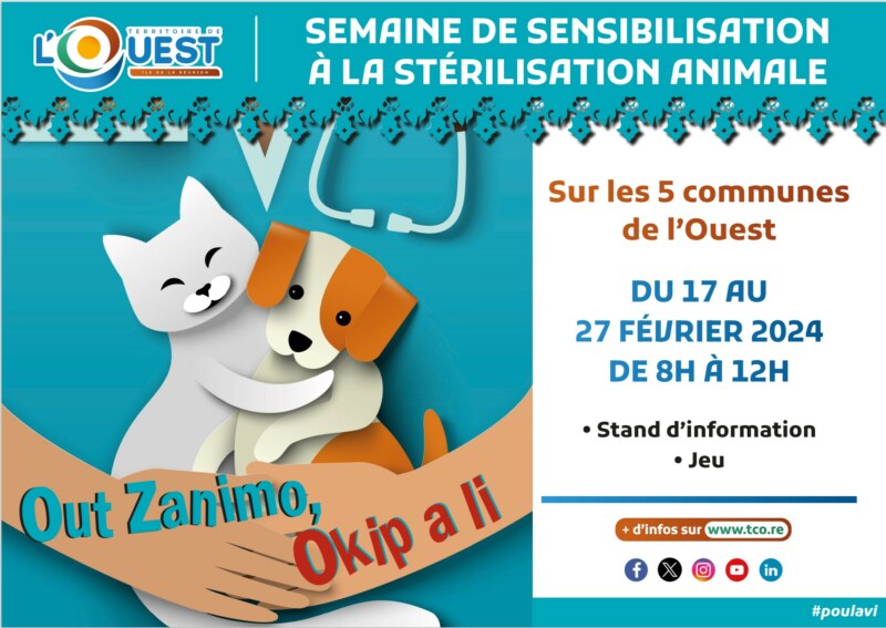 Du 17 au 27 février 2024, le Territoire de l’ouest se mobilise pour la Semaine de Sensibilisation à la Stérilisation Animale. Cette initiative vise à informer et encourager la stérilisation comme solution pour le bien-être des animaux de compagnie.