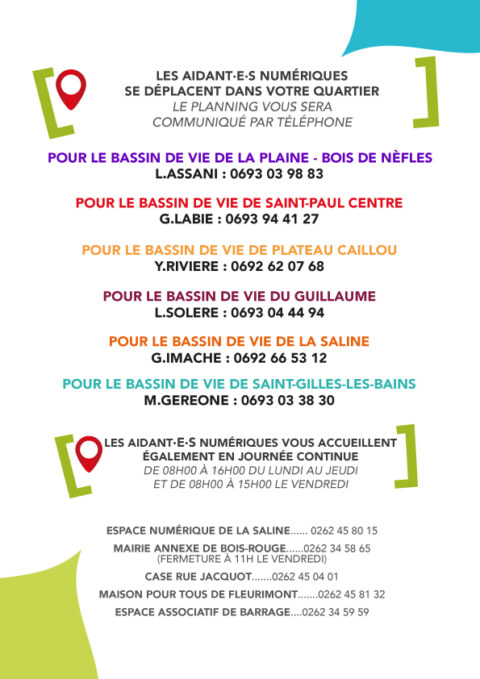 Les six conseillers numériques itinérants recrutés par la Ville de Saint-Paul, terre accueillante et participative, sont présents dans les 7 Bassins de vie du territoire.