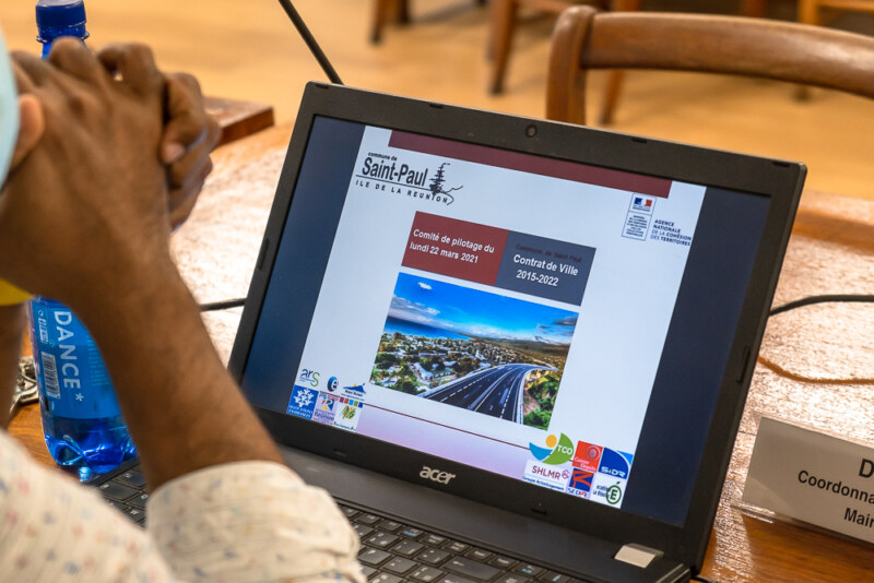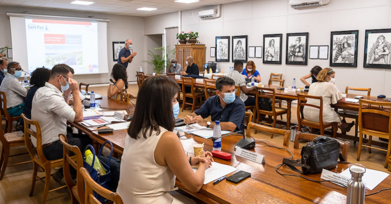 Le comité de pilotage du Contrat de Ville 2015-2022 de Saint-Paul s’est tenu ce lundi 22 mars 2021 dans la salle du Conseil Municipal. Étaient présents Camille DAGORNE ; la Sous-Préfète à la Cohésion Sociale et à la Jeunesse, Emmanuel SÉRAPHIN, premier adjoint, Perceval GAILLARD, l’élu délégué à la Politique de la Ville ainsi que les représentants des institutions et acteurs partenaires du Contrat de Ville de la Commune. Le diagnostic du territoire a permis d’articuler de façon cohérente les enjeux de la cohésion sociale, de développement économique, de renouvellement urbain et de citoyenneté pour mobiliser autour de plusieurs projets de territoire l’ensemble des politiques publiques.