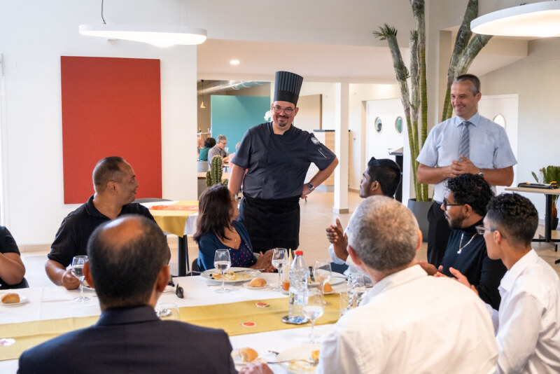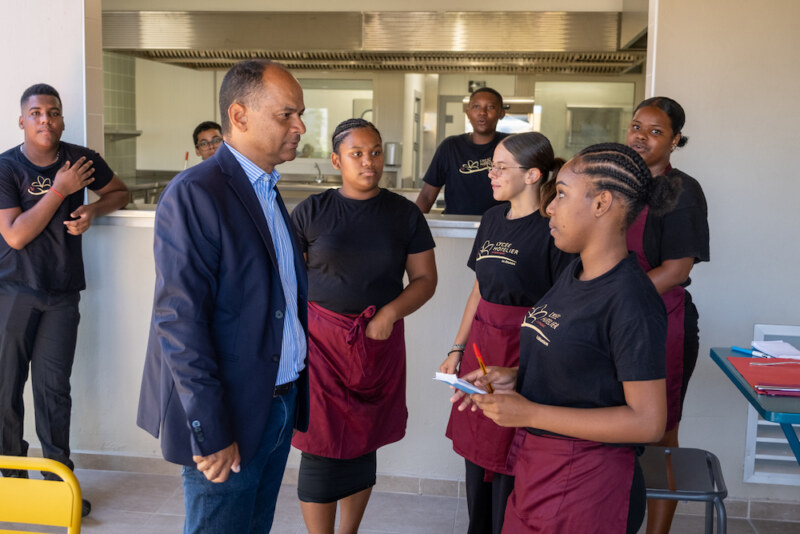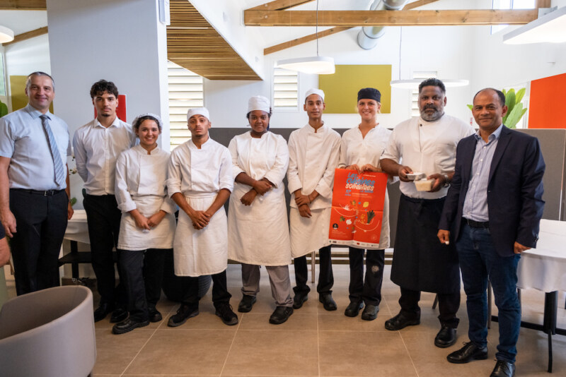 Du 27 mars au 7 avril 2023 se déroule l’événement “Cuisines Solidaires – La Relève” en partenariat avec la Ville de Saint-Paul, le Secours Catholique et la Croix Rouge. Dans ce cadre le Maire de Saint-Paul, Emmanuel SÉRAPHIN et les élu(e)s Nila RADAKICHENIN et Yann CRIGHTON se sont rendus au lycée professionnel hôtelier La Renaissance à Plateau Caillou où les élèves ont mis les petits plats dans les grands pour les associations caritatives du territoire. Cette 10ème édition, engagée contre la précarité alimentaire, a pour objectif de sensibiliser les élèves d’écoles hôtelières en leur faisant cuisiner des repas pour les bénéficiaires de l’aide alimentaire. Ce mardi 28 mars, les élus ont donc participé à un déjeuner produit par 15 étudiants du lycée hôtelier. Ils ont produits 300 repas qui seront distribués aux plus démunis : 120 pour le Secours Catholique, 180 par le CCAS. La distribution est réalisée par les référents d’associations qui procéderont ensuite à une distribution auprès de leurs bénéficiaires.