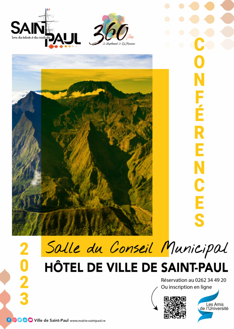 Les Amis de l’université et la Ville de Saint-Paul vous proposent un cycle de conférences à l’Hôtel de Ville de Saint-Paul. Retrouvez les dates ci-dessous.