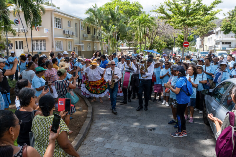 Entre balades culturelle et patrimoniale, nos gramouns ont eu l’occasion de vivre une mâtinée enrichissante. C’est tous vêtu de bleue que les gramouns ont marché depuis le parcours de santé, passant par la salle de conférence du Front de Mer, le Débarcadère et finissant la balade en fanfare avec l’orchestre en cuivre dans le jardin de la Ville de Saint-Paul.