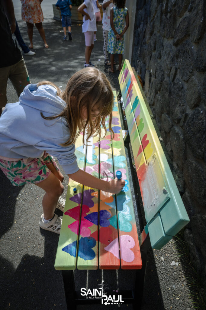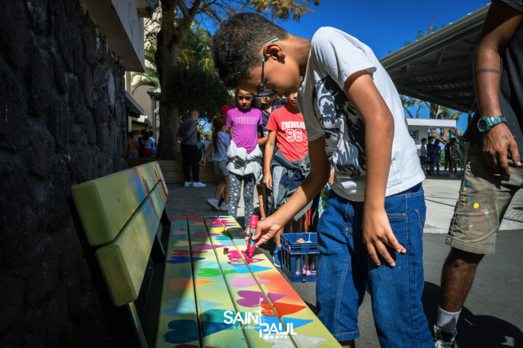 - et un atelier artistique de décoration du banc avec Bonheur Graphic, graffeur bien connu à Saint-Paul.