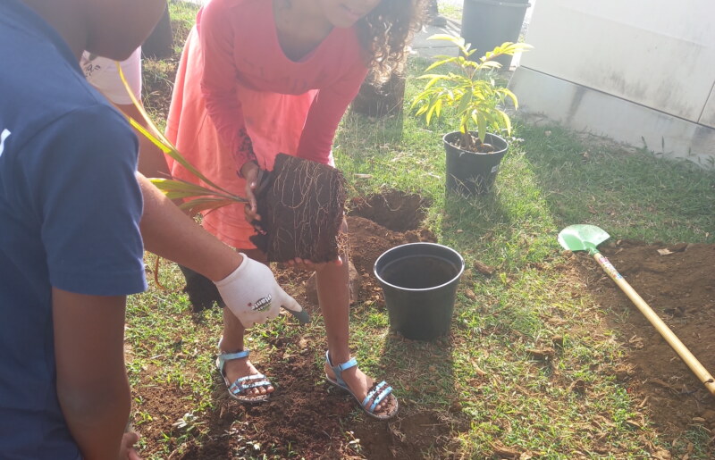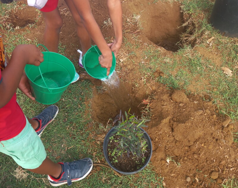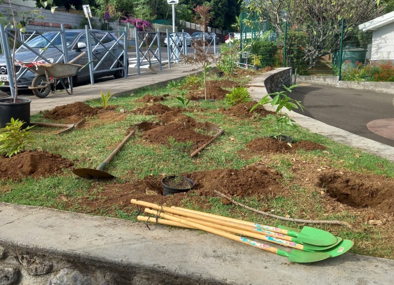 Une action de plantation a eu lieu en collaboration avec les élèves de l’école élémentaire Les Chocas à la Plaine Saint-Paul, le mardi 20 juin 2023. Dans le cadre de notre engagement pour la préservation de la biodiversité sur notre territoire, la ville de Saint-Paul continue ses efforts de lutte contre les espèces exotiques envahissantes, en particulier le Tulipier du Gabon. Ainsi, les tulipiers du Gabon situés aux abords de l’école ont été coupés, permettant la création de nouveaux espaces à végétaliser.
