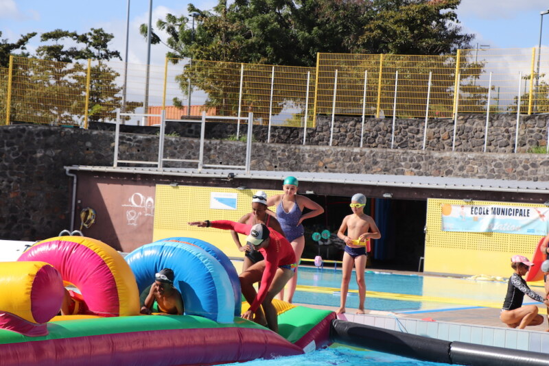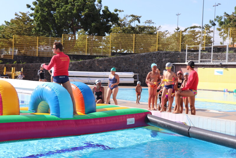 Hébergés durant leur séjour au Centre Jacques Tessier à La Saline-les-Bains, onze enfants originaires du Cirque de Mafate découvrent le littoral lors d’une classe de découvertes. Âgés entre 3 et 11 ans, les enfants scolarisés à l’école de Roche Plate découvrent les joies des activités nautiques ce mercredi 28 juin à la piscine de Plateau Caillou. Pour marquer le coup, les marmailles, dont le plus jeune est inscrit en petite-section, ont profité des structures gonflables et des ateliers des MNS.