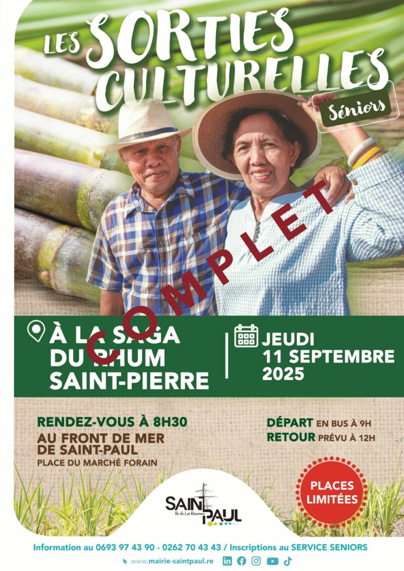 Le jeudi 11 septembre 2025, la ville de Saint-Paul invite ses Gramounes à une nouvelle escapade culturelle au cœur du patrimoine réunionnais : direction la Saga du Rhum à Saint-Pierre.