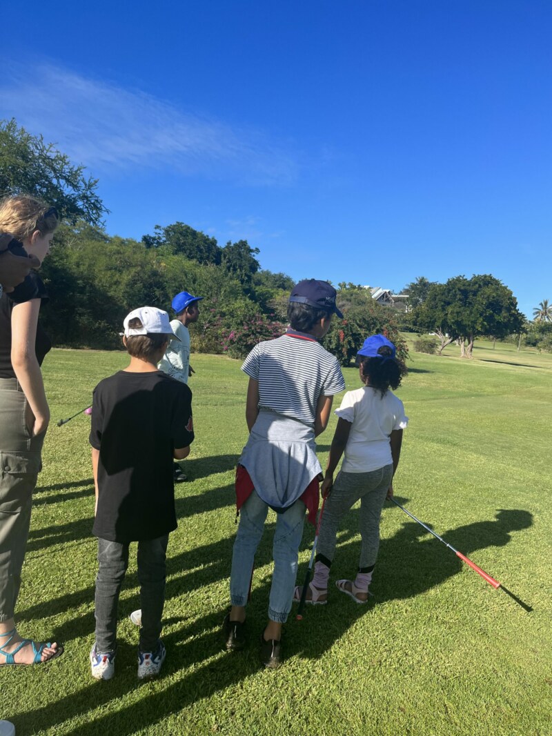 Depuis le mois de mars, les élèves de CE2 à CM2 des écoles de Bellemène et de Bras Canot se sont formés à la pratique du golf sur le parcours de Bassin Bleu à Villèle. Cette initiative a été rendue possible grâce à l’USEP (Union Sportive de l’Enseignement du Premier Degré), qui organise des activités sportives pour les enfants des écoles publiques, de la maternelle à l’élémentaire. Ce jeudi 8 juin, s’est déroulée la dernière séance en présence du Maire de Saint-Paul, Emmanuel SÉRAPHIN, qui était ravi de pouvoir proposer aux élèves de la ville une activité scolaire et sportive originale. Un programme de 10 sessions d’entraînement avait été prévu les jeudis matin. Cette découverte a enchanté les enfants, leur permettant de pratiquer un sport peu courant dans les établissements scolaires à La Réunion. Par ailleurs, la Ville de Saint-Paul félicite M. MOUNIAMA et M. SIMINE, employés de la structure, pour leur qualification au championnat de France de clubs par équipe à Dijon. Saint-Paul est indéniablement une terre de champions !