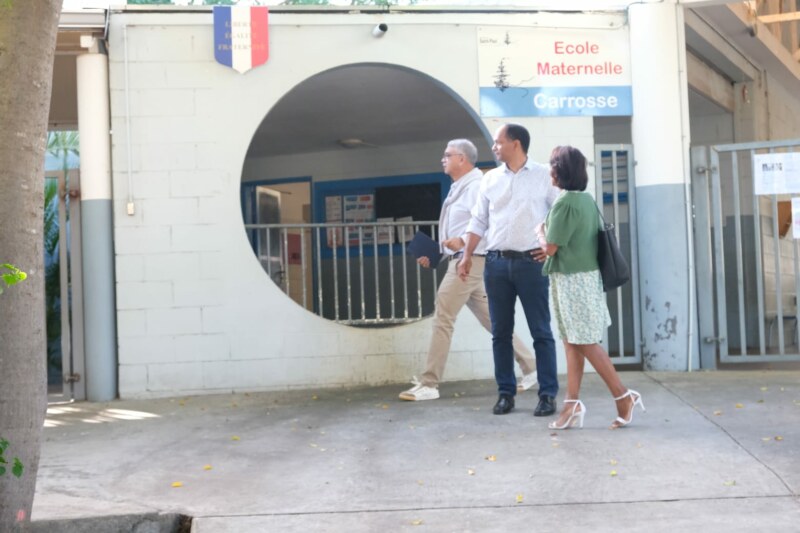 Emmanuel SÉRAPHIN, le Maire de Saint-Paul, poursuit ses visites dans les établissements du premier degré du territoire. Cette fois-ci, il s’est rendu en compagnie de l’élue déléguée aux affaires scolaires Nila RADAKICHENIN, à l’école maternelle de Carosse à Saint-Gilles-les-Bains le mardi 6 juin, dès le début des cours. La Ville de Saint-Paul s’engage fermement dans une démarche d’excellence éducative, cherchant ainsi à offrir un accueil de qualité aux écoliers.