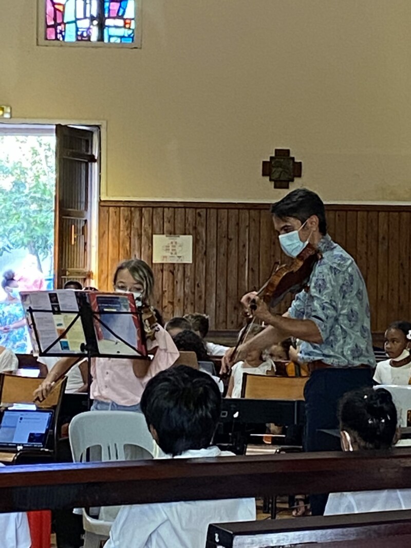 1 – le vendredi 10 décembre 2021 à 17h00à l’église de Saint-Gilles les Bains : concert d’élèves de la classe de violon (niveaux Init.M II & Init.M III ). PIERRE SALLES (professeur de violon) et THIERRY QUINIOU (professeur de piano) joueront deux pièces en solo. Ce rendez-vous musical se terminera par une composition pour chœur d’enfants, cordes, claviers, violon solo et bande-son, dirigée par PHILIPPE BARRET et dont le titre est: « PROMENADE EN DO MAJEUR  SUR LE THÈME DE SOPHIE, D’ALAIN VOIRPY».