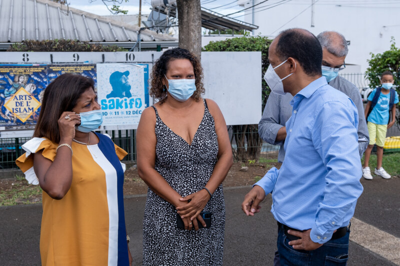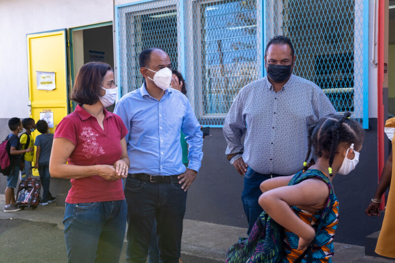 Accompagné de Yann CRIGHTON, délégué à la restauration scolaire et au bassin de vie de La Plaine/Bois-de-Nèfles, le Maire de Saint-Paul, Emmanuel SÉRAPHIN, poursuivra ses visites dans les écoles pour, dit-il : “se rendre compte de ce qui doit être amélioré afin d’offrir les meilleures conditions d’apprentissage pour les élèves Saint-Paulois. Les modalités d’accueil sont importantes cela concerne le bâti, le personnel encadrant, les dispositifs mis en place comme l’école numérique, le matériel fourni et les livres à disposition. Nous contribuons à créer un environnement agréable propice à l’épanouissement des 13 000 écoliers du premier degré du territoire et cela passe par une meilleure écoute, mais aussi une meilleure coordination et une planification au niveau des Affaires Scolaires. Ce travail de collaboration demandera du temps, des moyens et de la coordination afin d’offrir un environnement optimal favorisant l’épanouissement de chaque enfant. “