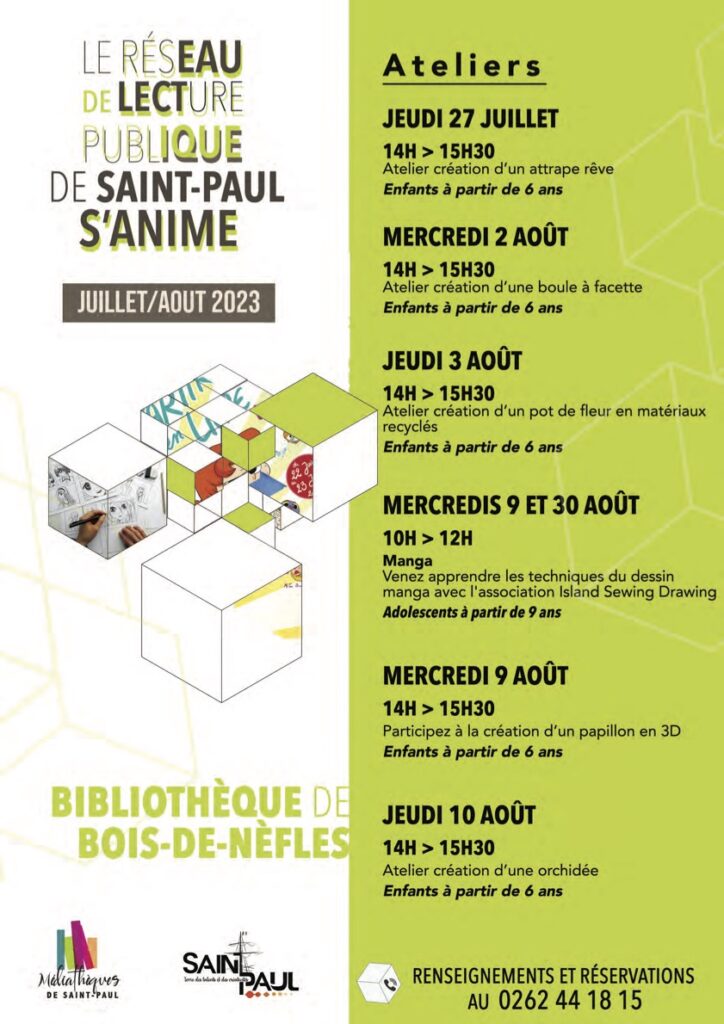 Retrouvez le programme du réseau de lecture publique de Saint-Paul pour les mois de juillet août 2023