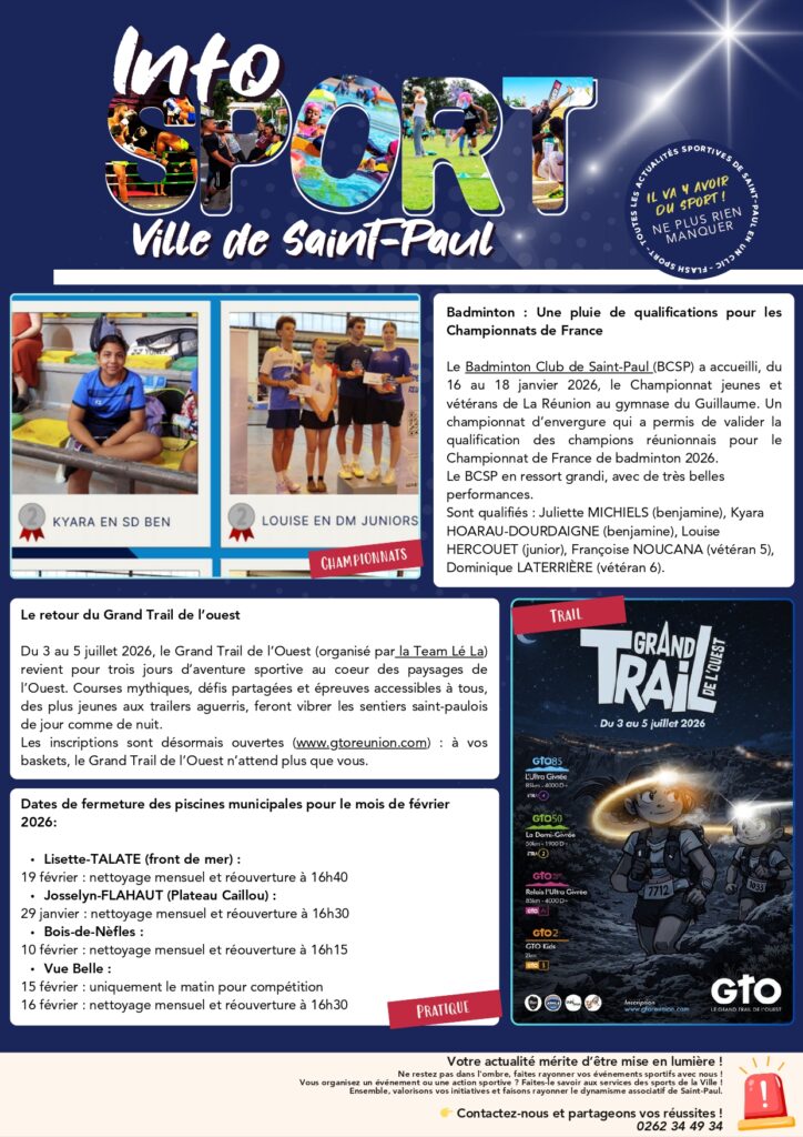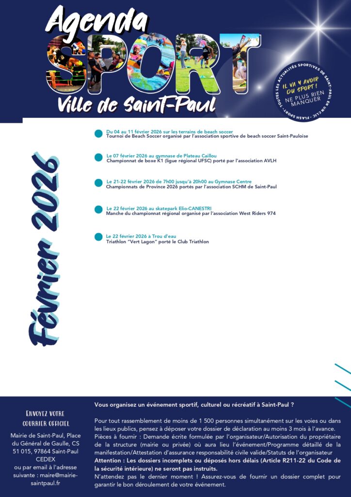 Le mois de février 2026 confirme une nouvelle fois le dynamisme sportif de la Ville de Saint-Paul, avec une programmation riche, des équipements modernisés et de belles performances locales.