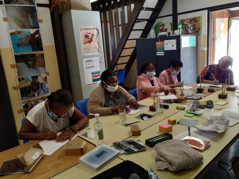 “Explorer ses propres espaces de vie en prenant le temps de voir, d’entendre, de sentir et de raconter… c’est partir à la découverte d’un nouveau territoire”, commence Cathy Cancade la directrice du projet “Les Ateliers de Terra Incognita”. L’expérience s’est déroulée à Plateau Caillou, plus exactement dans le quartier Combavas. Terra Incognita et l’association Praxitèle ont invité les habitants du quartier à partager une expérience artistique autour de l’écriture et de la gravure. Deux artistes Stéphanie HOAREAU et Cathy CANCADE, les ont accompagné tout au long de cet atelier.