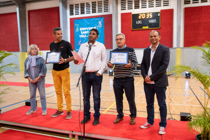 Une fois n’est pas coutume, la Ville de Saint-Paul a vécu un week end résolument sportif ! Le club de Volley ball “Saline Volley-Ball” a été inauguré ce samedi 27 août au complexe sportif de Vue Belle en présence du Maire de Saint-Paul, Emmanuel SÉRAPHIN et de Cédric DALY, le président du club. 8 mois d’activités et déjà 82 licencié(e)s, c’est dire si cette discipline était attendue dans le quartier ! Devant 300 personnes, ce samedi fut l’occasion de présenter les équipes de ce nouveau club et de remettre, à chaque volleyeur, son maillot ! L’occasion également de saluer Gilbert VALENTIN et Laurent SEVAGAMY pour leur implication et la transmission de leur passion pour le volley ball aux volleyeurs de la Saline.