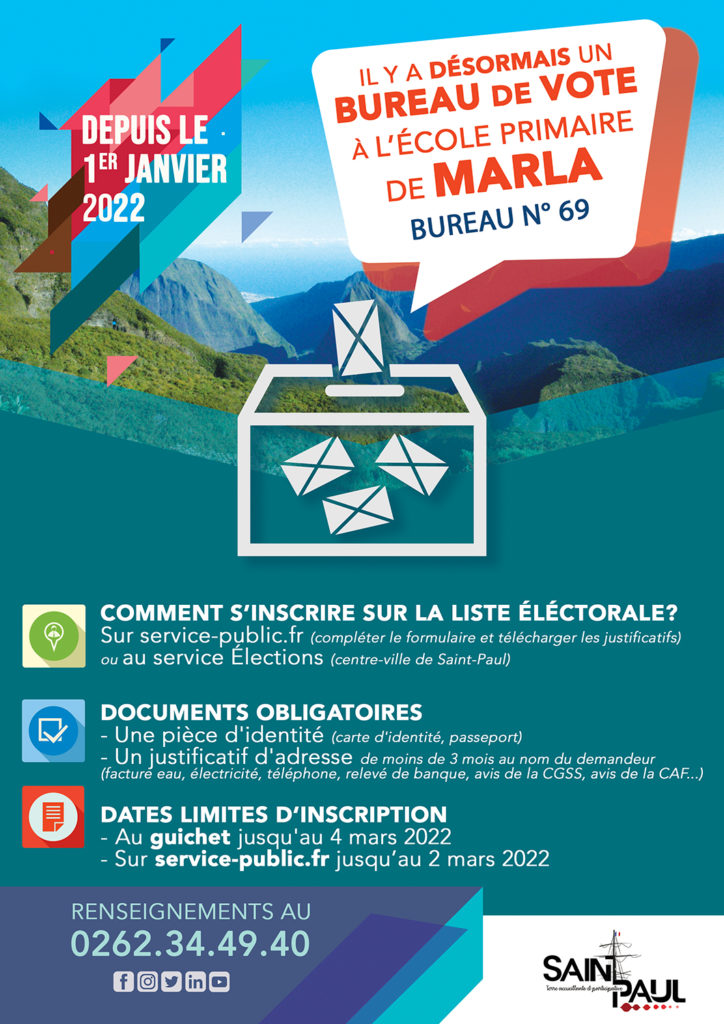 La Ville de Saint-Paul invite les administrés à s’inscrire sur la liste électorale :