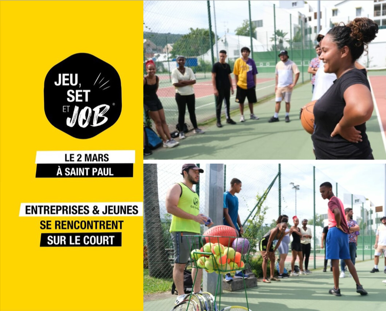 En partenariat avec la Ville de Saint Paul, le Pôle Emploi de l’Éperon, Le Pôle Emploi de Savanna et la Mission Intercommunale de l’Ouest, l’association Fête le Mur a développé l’action “Jeu, Set et Job” qui se concrétisera le 2 mars prochain par un job-dating sportif.