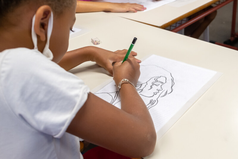 Dessiner le portrait de sa maman à partir d’une photo. Voici l’œuvre réalisée ce mardi 16 mars 2021 par les marmays des Accueils de Loisirs Sans Hébergement (ALSH) de la Ville de Saint-Paul. Ils participent à un atelier artistique à l’école primaire du Bernica.