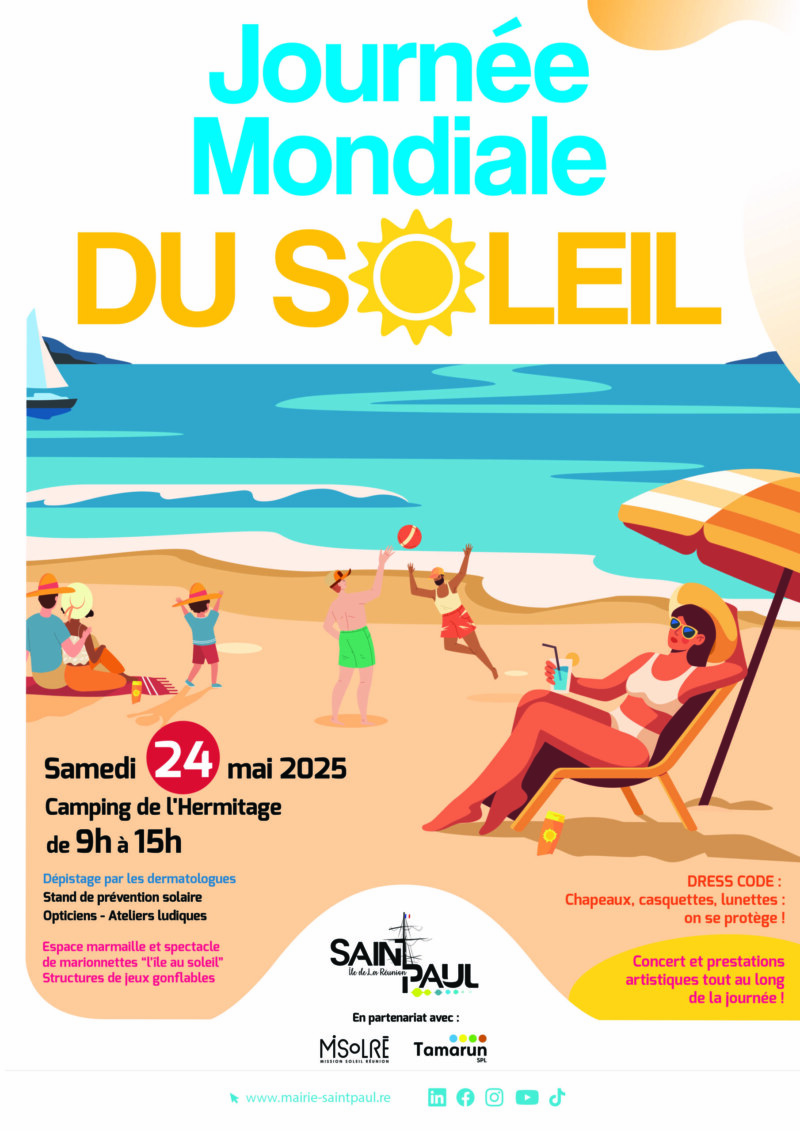 Le samedi 24 mai 2025, la Ville de Saint-Paul, en partenariat avec l’association MiSolRé et de nombreux acteurs engagés, organise la 3e édition de la Journée mondiale du Soleil au camping de l’Ermitage, de 9h à 15h.