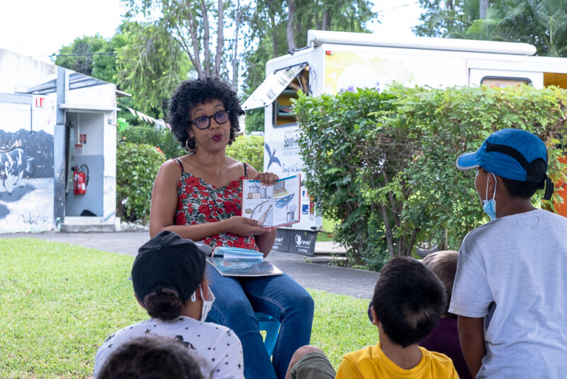 D’autres petit.e.s Saint-Paulois.e.s profitent aussi du Médiabus. Cette véritable médiathèque mobile dans laquelle ils peuvent venir lire ou emprunter des livres. Ce véhicule aménagée se déplace en effet dans les quartiers des Bassins de vie de la Commune.