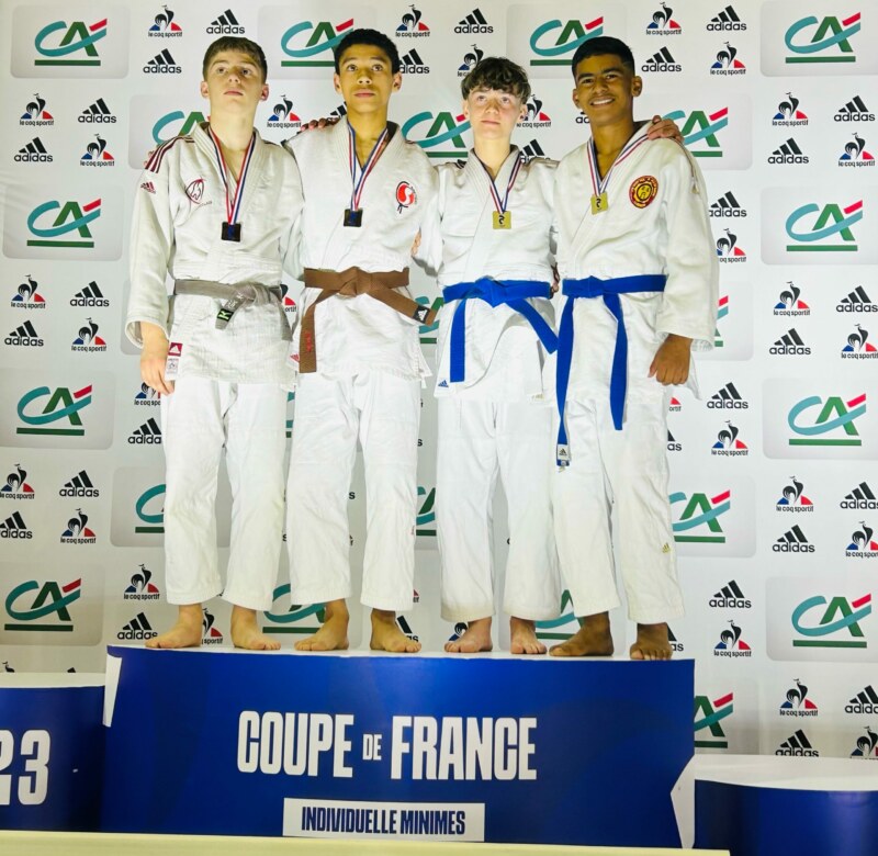 Saint-Paul, définitivement terre de champions ! Noa MIRANVILLE a remporté la médaille de bronze en -50kg à l’issue d’une journée intense de combats le samedi 25 mars 2023 à la Coupe de France Minimes qui s’est déroulée à Villebon. Cette Coupe nationale s’est déroulée sur 2 jours avec des centaines de combattants, sélectionnés et venus de toute la France. Il était accompagné et soutenu par d’autres judokas du club ayant fait le déplacement eux aussi pour combattre ainsi que de Julien LALLEMAND et de Orianne ANILHA qui l’a coaché tout au long de cette journée.