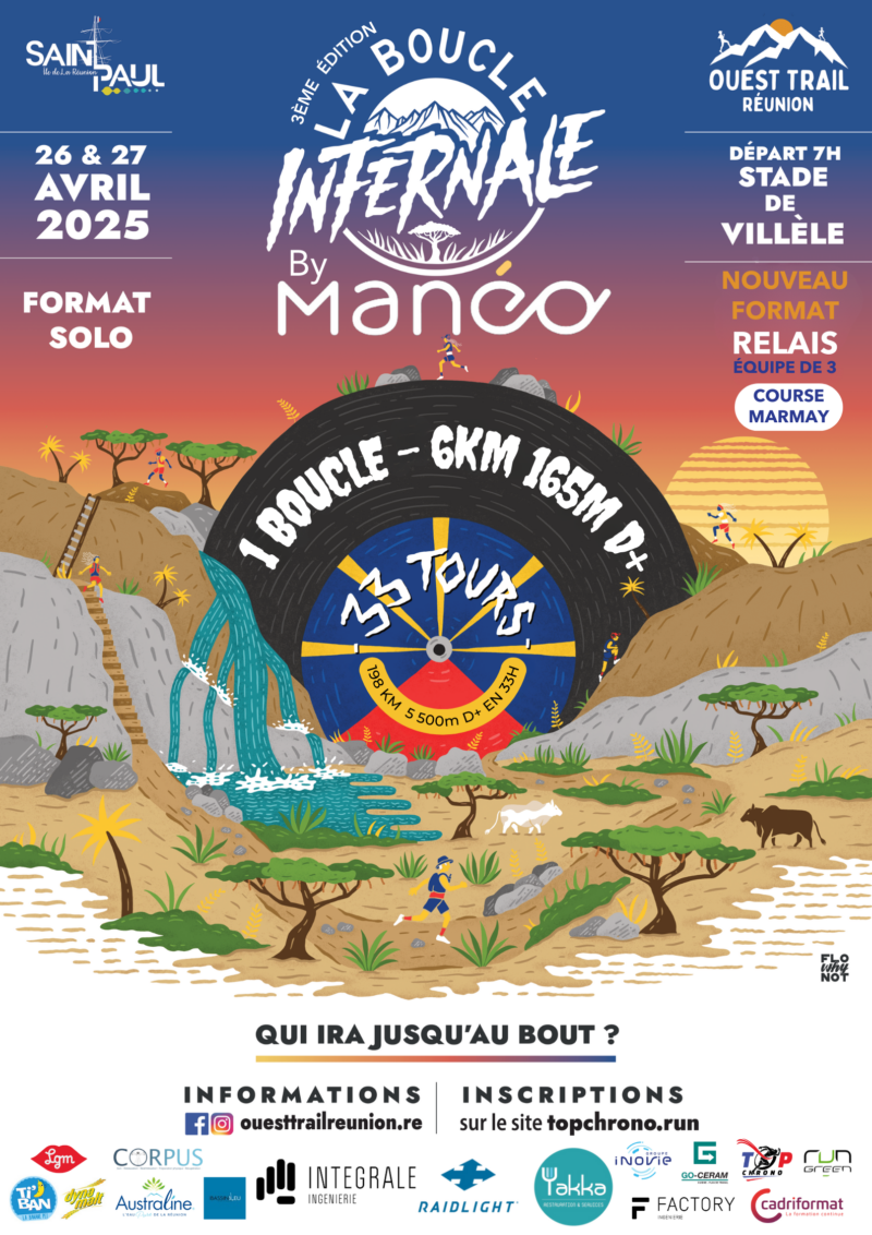 Le rendez-vous est donné : le 27 et le 28 avril 2025, Saint-Paul vibrera au rythme de la 3ᵉ édition de La Boucle Infernale by Ouest Trail, un événement désormais incontournable pour les passionnés de trail et d’ultra-endurance. Organisée au cœur des paysages à couper le souffle de notre belle ville, cette course au format Last Man Standing promet, encore une fois, de repousser les limites des coureurs les plus téméraires.