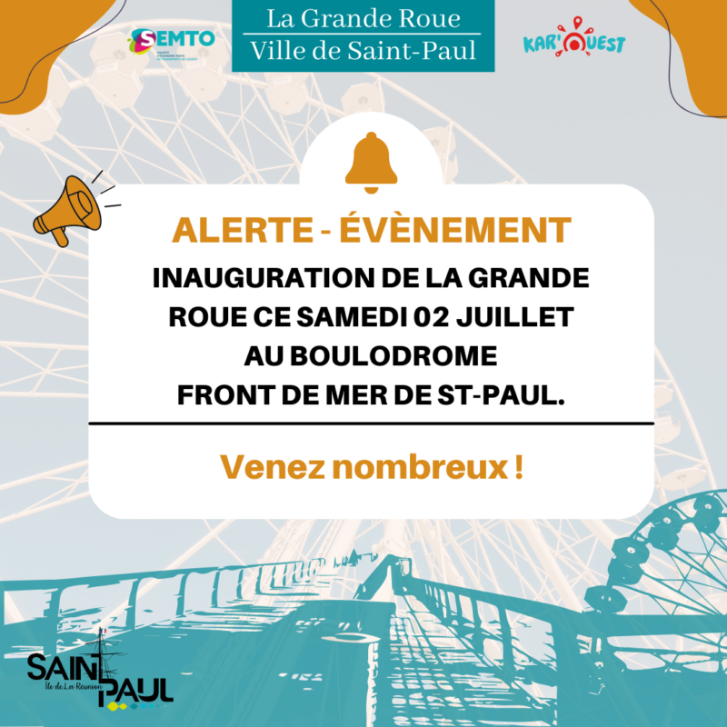 Pour le plus grand bonheur des petits et des grands, la Grande Roue s’installe pour plusieurs semaines sur la place du boulodrome à Saint-Paul ce samedi 2 juillet !