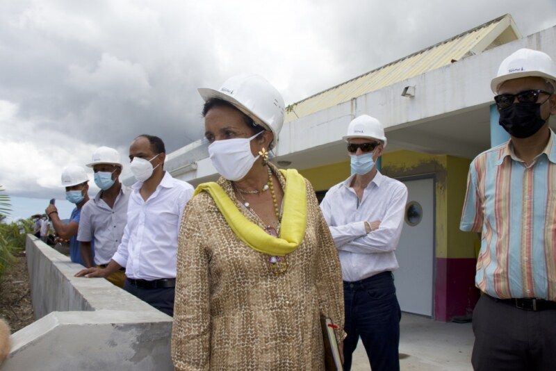 Lors de cette visite de terrain, la Maire de Saint-Paul tient à s’assurer de la mise en sécurité de cette opération. L’accompagnent le président du Territoire de la Côte Ouest, et 1er Adjoint, Emmanuel SÉRAPHIN, et les Adjoint.e.s Nila RADAKICHENIN et Jean-Noël JEAN-BAPTISTE. Les services de la commune et les représentants des entreprises aussi.