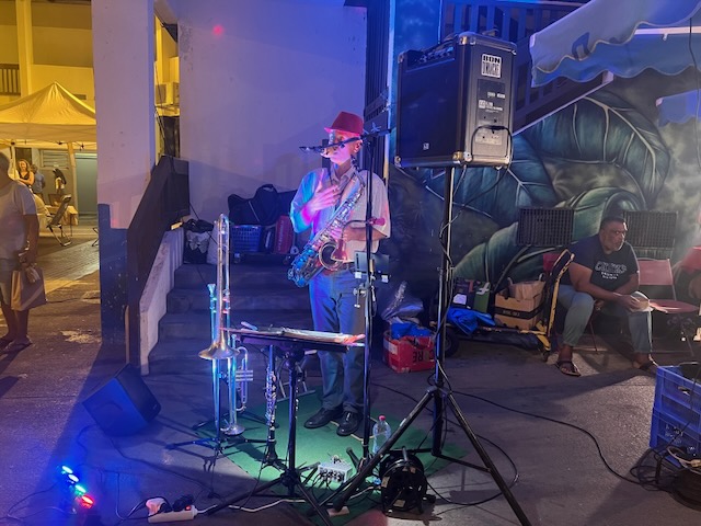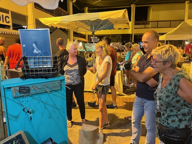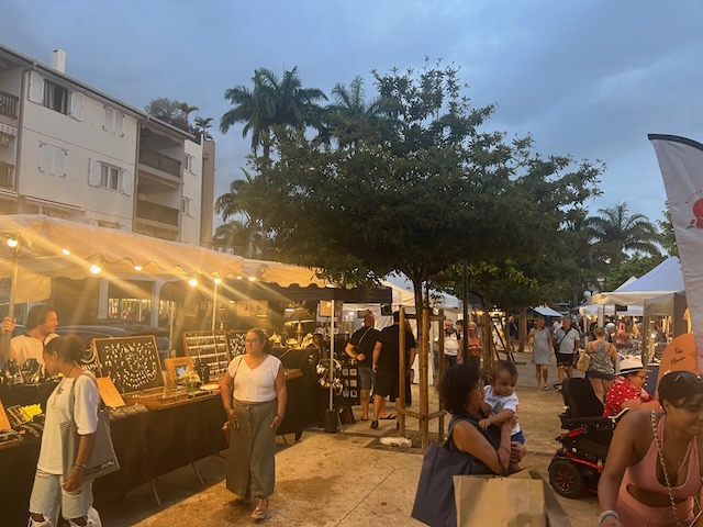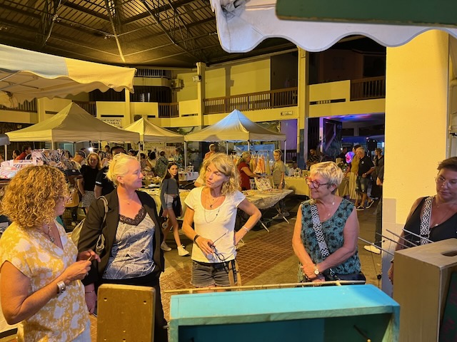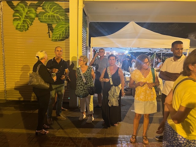 Accompagnée de Madame Virginie SALLÉ, Adjointe au Maire déléguée à la politique du bassin de vie de Saint-Gilles, et de Madame Carole LEVENEUR, Adjointe aux affaires agricoles et aux marchés de plein air, Madame Rubin a également découvert le nouveau marché nocturne de la Ville. Ce marché offre une expérience authentique de La Réunion, avec son artisanat et une ambiance animée.