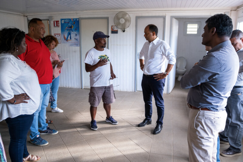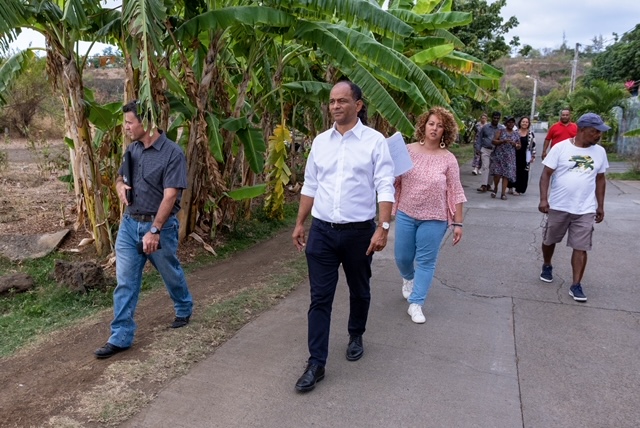 L’adjoint au Bassin de vie de La Plaine Bois-de-Nèfles, Yann Crighton, ainsi que d’autres élus : Martine GAZE (déléguée à l’agro tourisme et au développement des politiques des territoires et à la citoyenneté), Denise DELAVANNE (déléguée à la politique de la ville, à l’insertion par l’économie et au développement de l’économie Sociale et Solidaire), Huguette GRONDIN (déléguée au service civique) accompagnaient le Maire ainsi que des administratifs à ce déplacement découpé en plusieurs séquences.