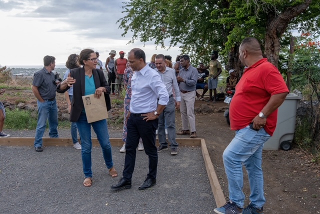 La délégation s’est d’abord rendue en début d’après-midi sur le plateau noir de Bel-Air pour échanger sur un projet de marché forain. A quelques pas du CASE de Bel-Air, ce projet est attendu par la population qui souhaiterait ce service de proximité, créateur de liens. L’occasion pour le Maire et sa délégation de rencontrer l’association Aide entraide aux Saint-Paulois qui a l’idée originale de mettre en place un garage solidaire dans leur quartier. La Visite se poursuit avec la visite du vestige du Canal Lemarchand où un projet d’aménagement et d’agriculture est en discussion. Dans les hauteurs de Saint-Paul, les idées et autres initiatives ne manquent pas. Ce rendez-vous terrain a permis de se rendre de compte du potentiel de ce territoire notamment grâce aux associations à l’image de celles du quartier de Trois-Chemins et du collectif Trois Chemins.