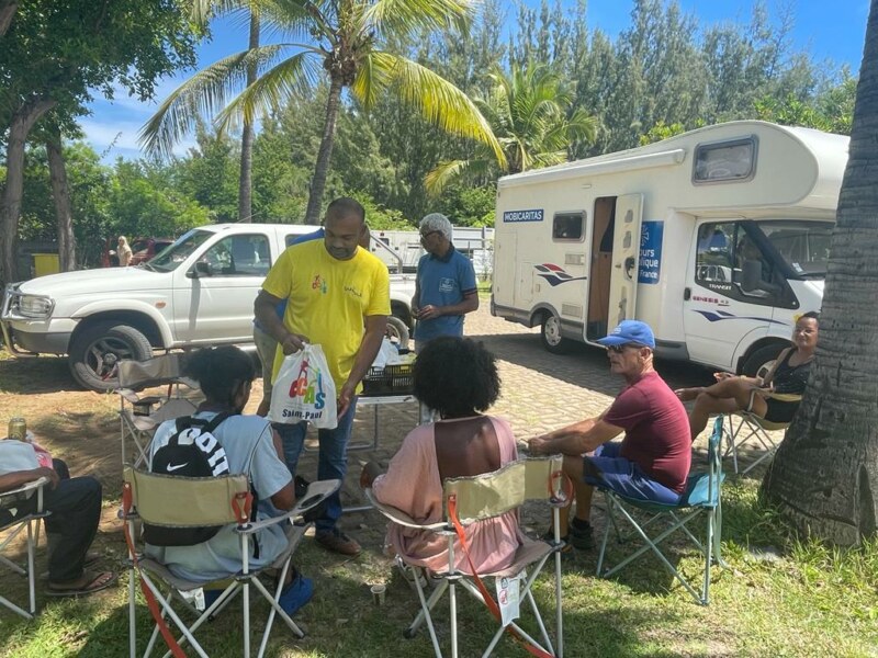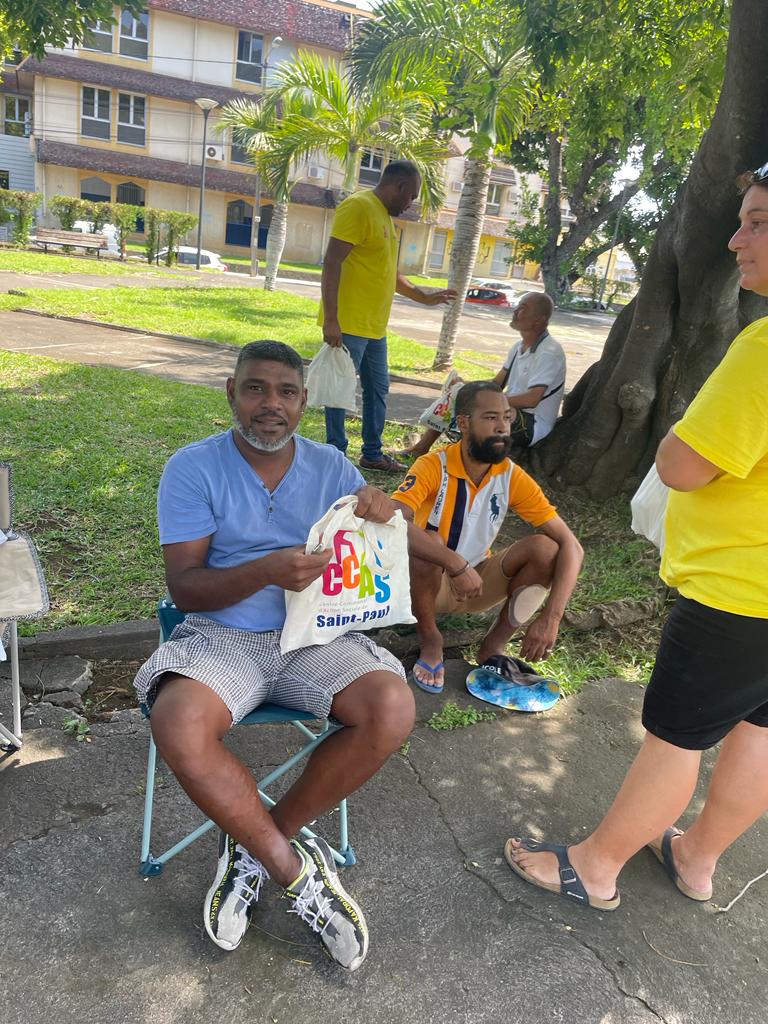 Cette action s’est déroulée dans un premier temps sur la place de l’Eglise à Saint-Paul puis dans un second temps dans le jardin de la mairie annexe de La Saline-les-Bains en présence de Virginie SALLÉ, élue de ce bassin de vie. Deux lieux distincts pour afin d’intervenir au plus près des personnes en grande précarité. Les bénéficiaires sont suivis dans le cas des maraudes du CCAS et sont accompagnés par une éducatrice de rue des bassins de vie de Saint-Gilles-les-Bains et de Saint-Paul Centre.